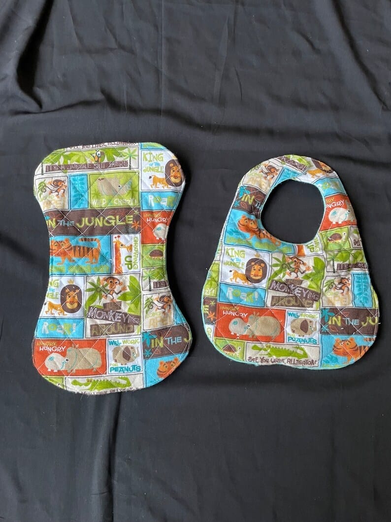 Jungle Animals Block Print Bib and Burp Cloth Set