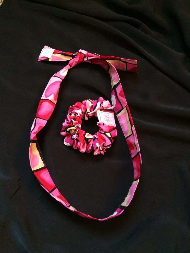 Pink and Red Hearts Scrunchie and Hair Tie