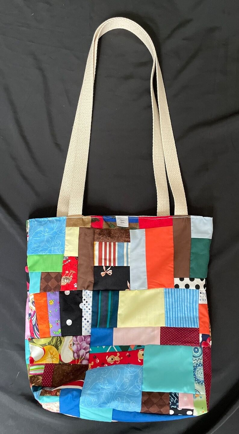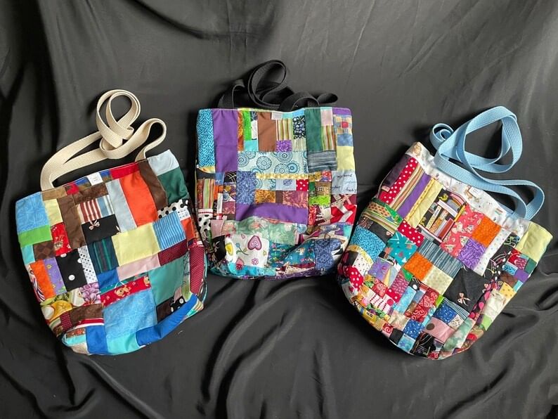 Lined Patchwork Tote Bags with Pocket